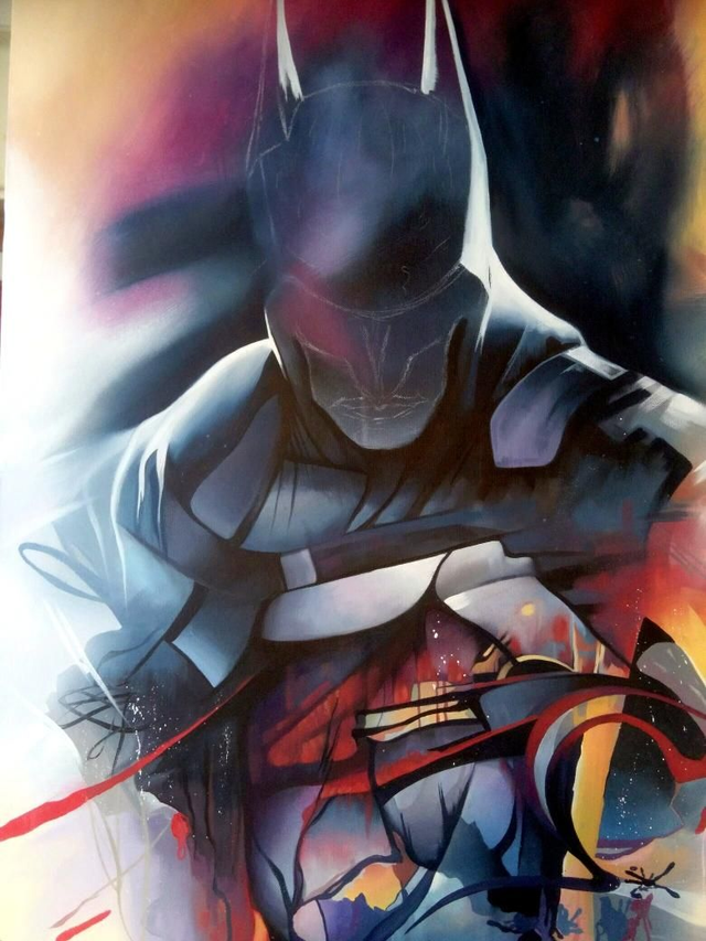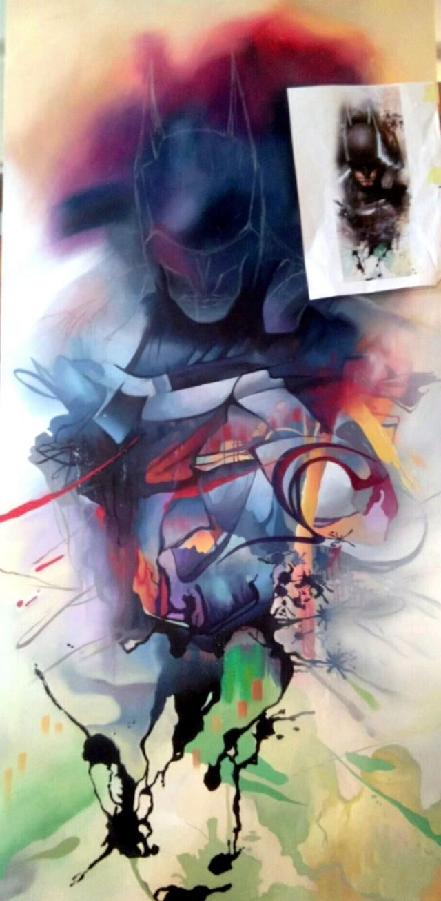 An original painting painting of Batman, in acrylic on canvas, 100x50x4cm in size.