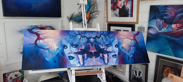 A panoramic greeting card featuring the artwork 'On the wings of the shadows'. It's blank inside and comes with a white envelope and cellophane sleeve.