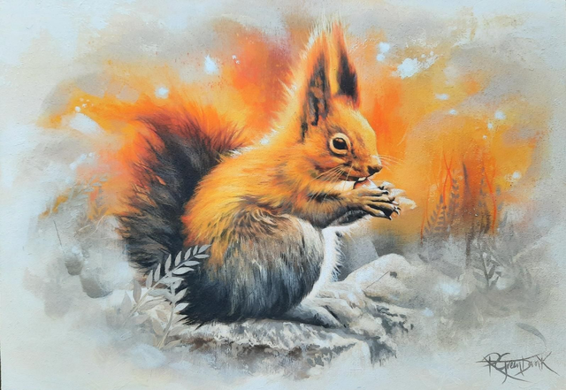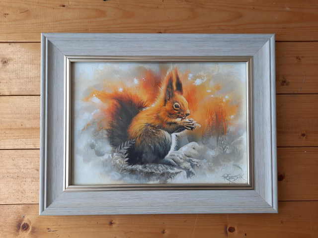 A Ltd Edition giclee print taken from my original painting of a red squirrel called The Nutter. Printed on Hahhnemule Paper using archival inks, the print is 29.7x21cm and mounted in white, backed and wrapped in cellophane.